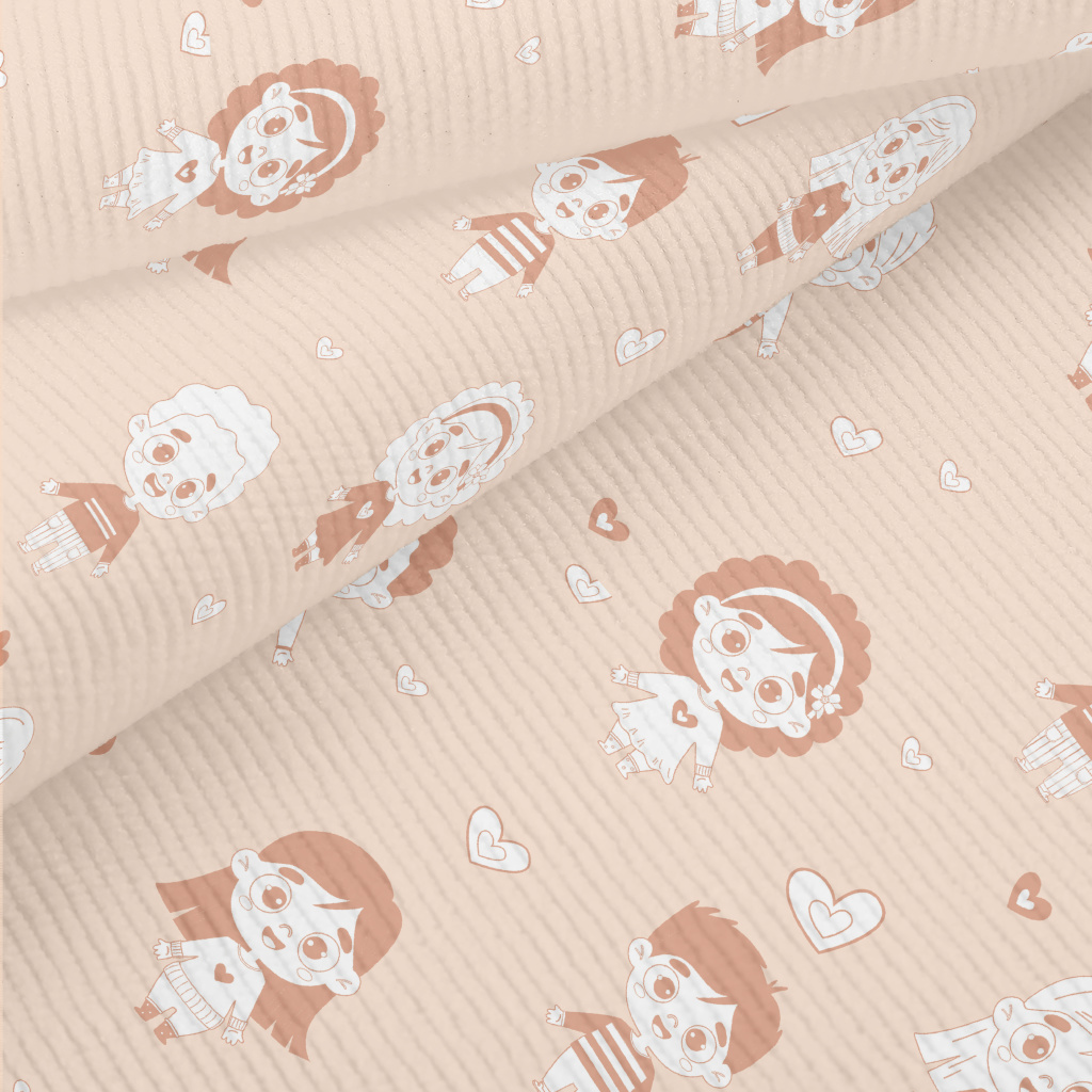 有趣的微笑男孩和女孩燈芯絨(幅寬150公分)