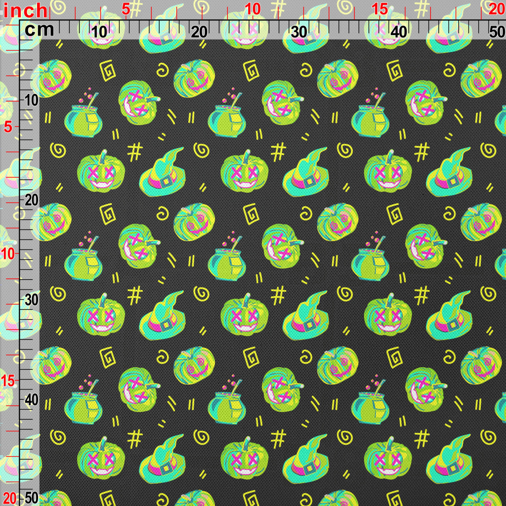 螢光色彩南瓜鍋爐巫婆帽高爾布(幅寬180公分)