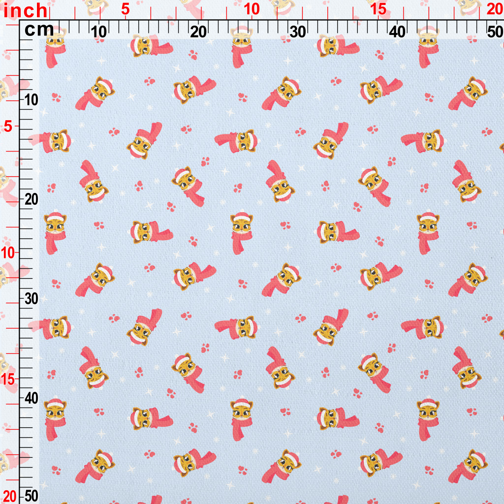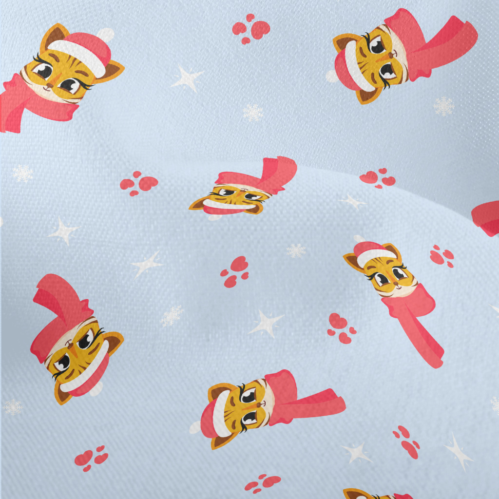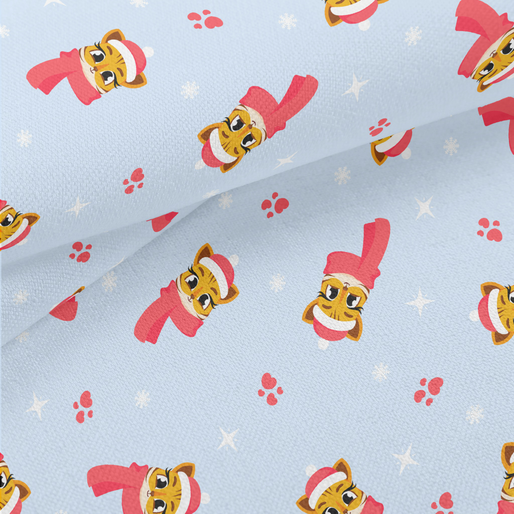 聖誕節老虎與雪花竹節麻(幅寬150公分)