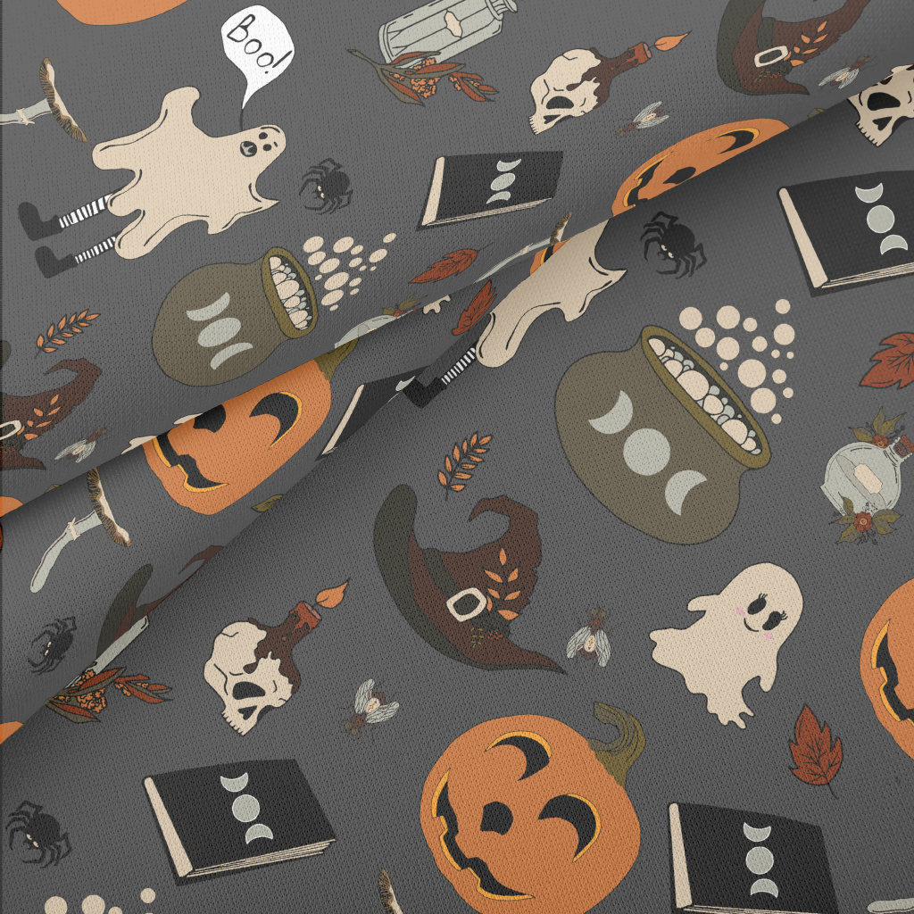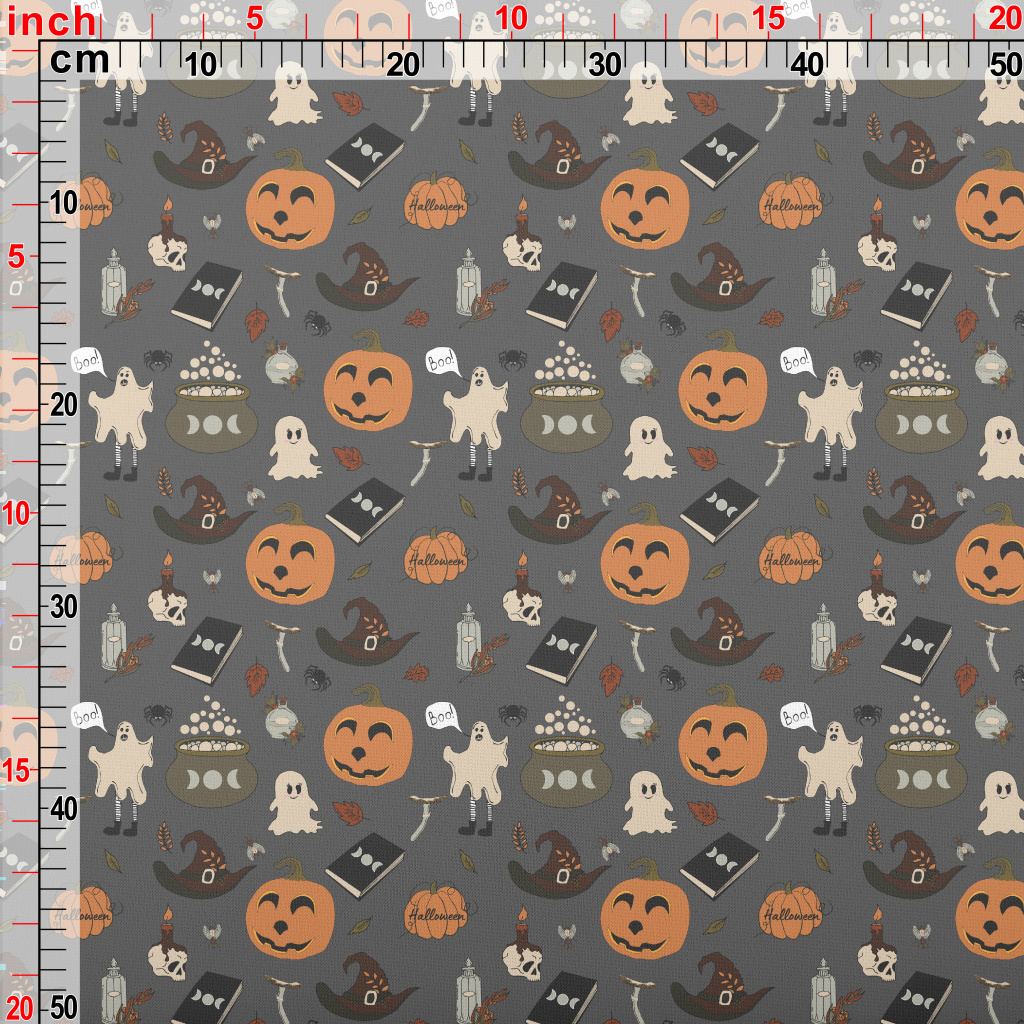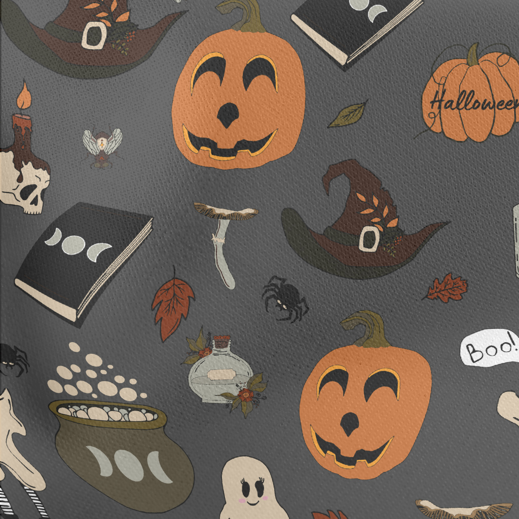 手繪幽靈南瓜鍋爐蠟燭羅馬布(幅寬160公分)