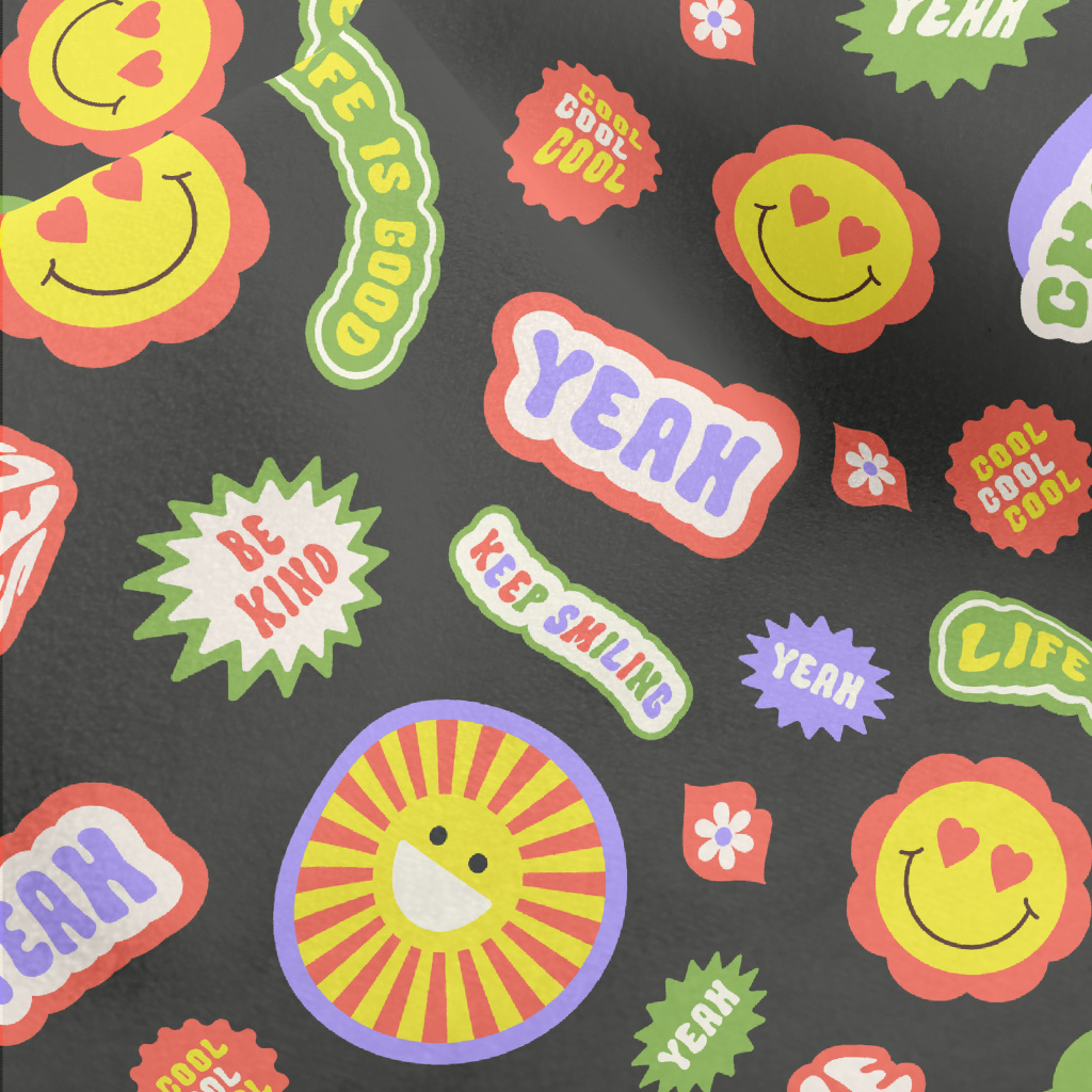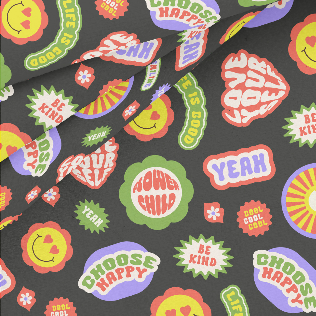 復古時尚英文與花朵水晶絨(幅寬160公分)