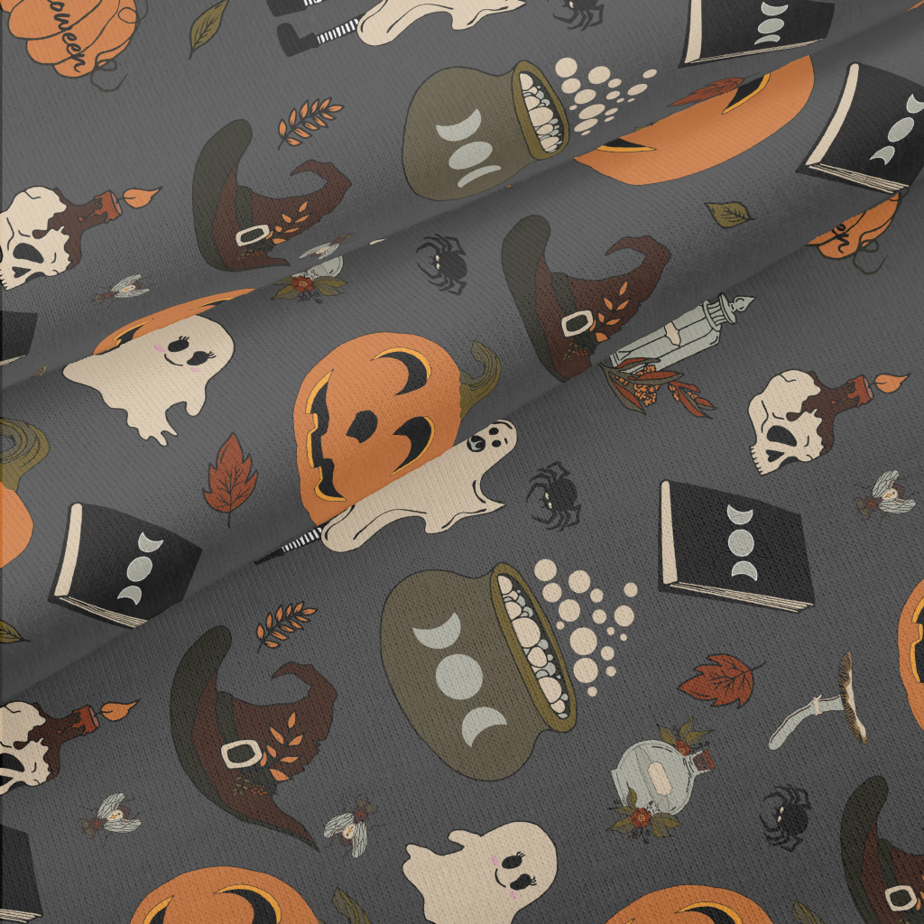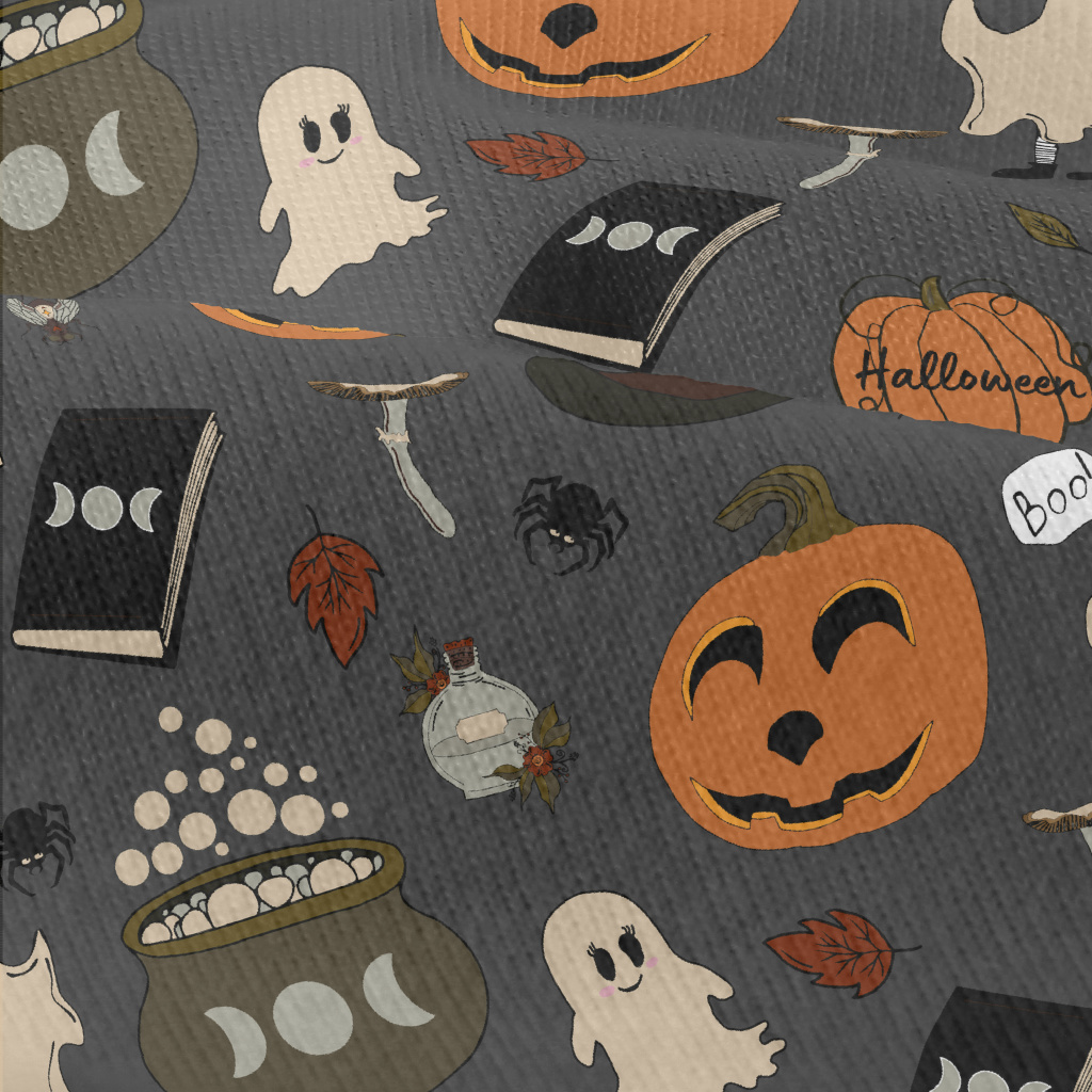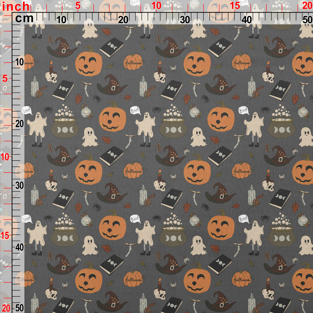 手繪幽靈南瓜鍋爐蠟燭仿棉布(幅寬150公分)