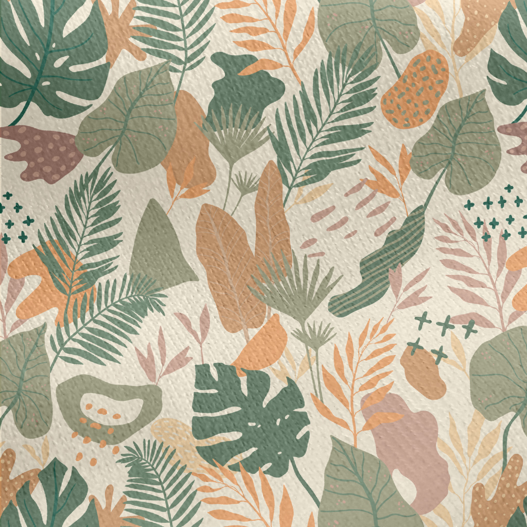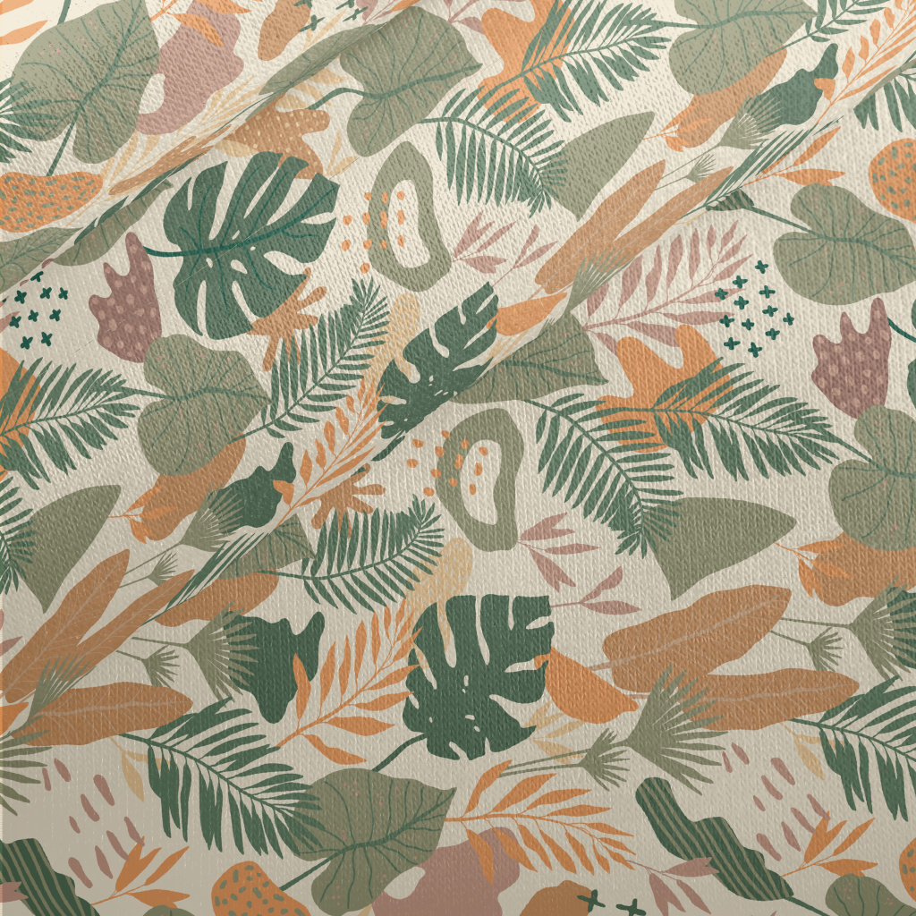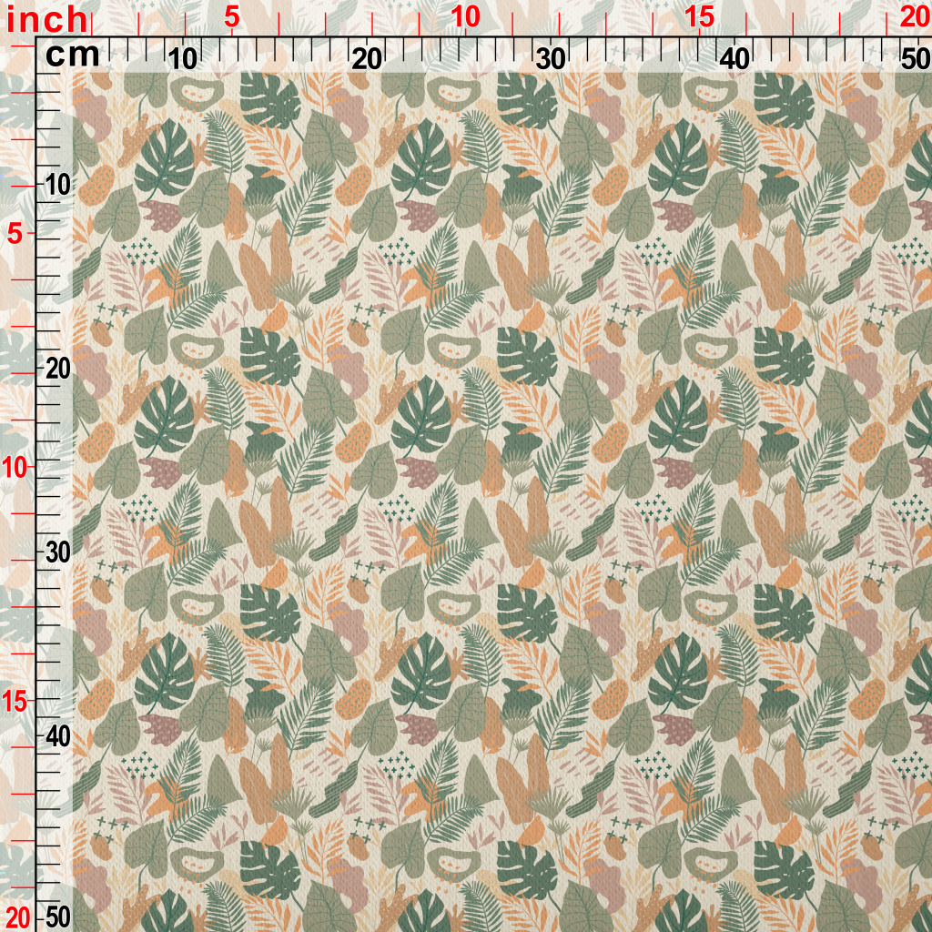 彩色熱帶綠葉植物刷毛布(幅寬150公分)
