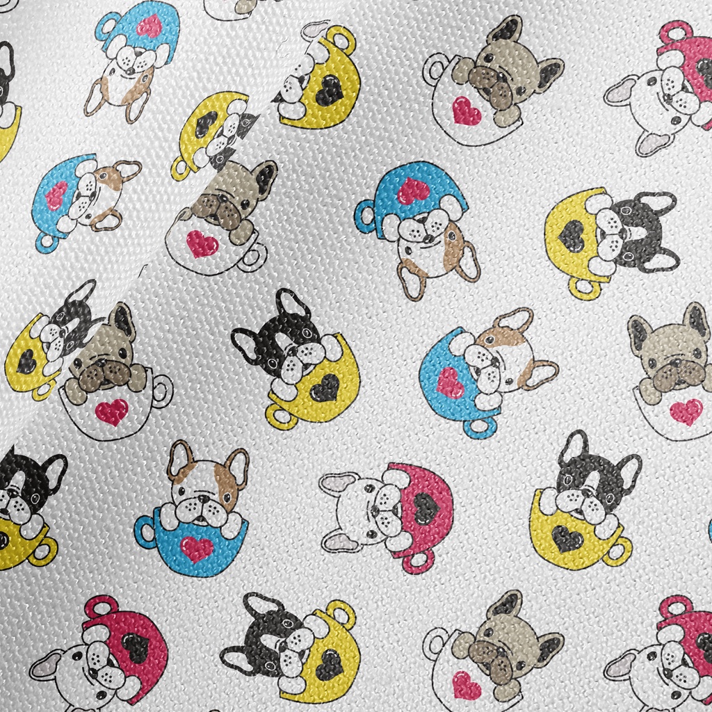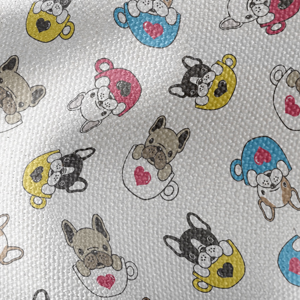 咖啡杯法國鬥牛犬帆布(幅寬150公分)