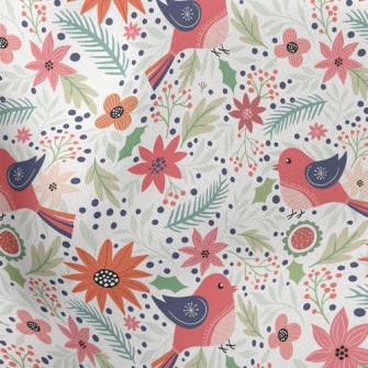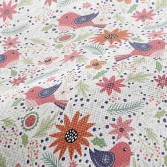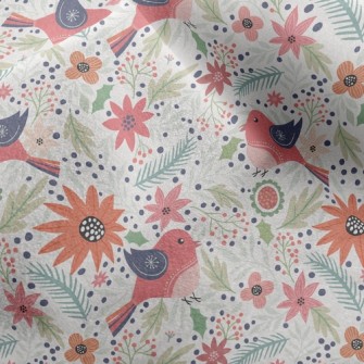 粉紅色鳥和花斜紋布(幅寬150公分)