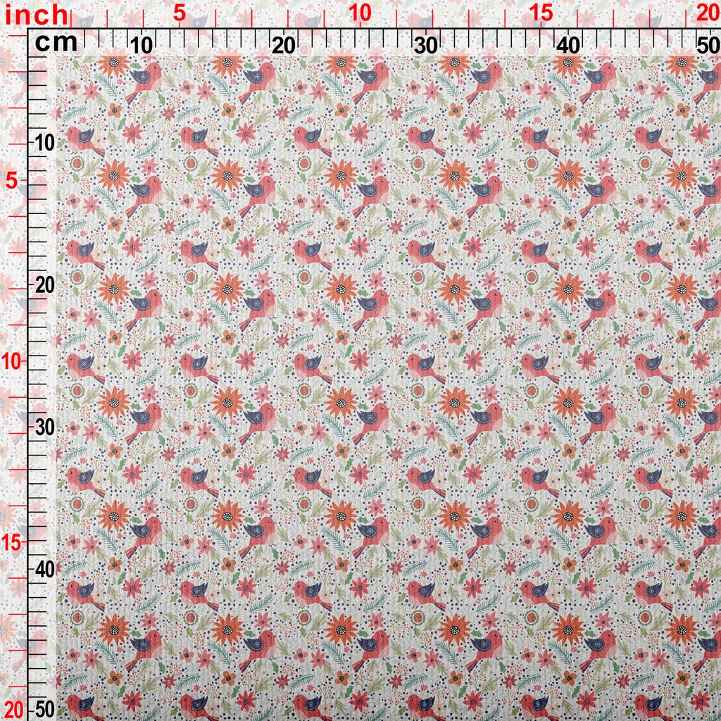 粉紅色鳥和花毛巾布(幅寬160公分)