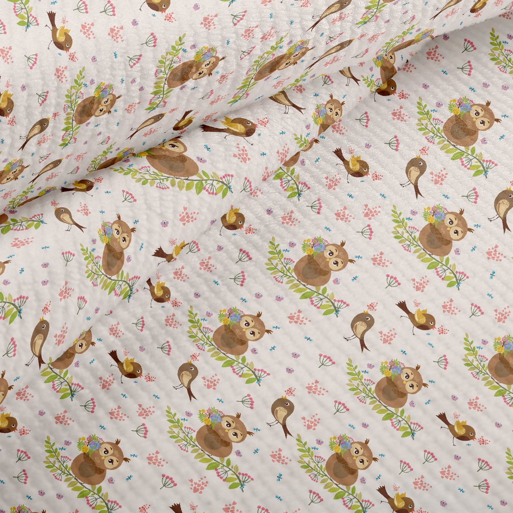 貓頭鷹與小鳥毛巾布(幅寬160公分)