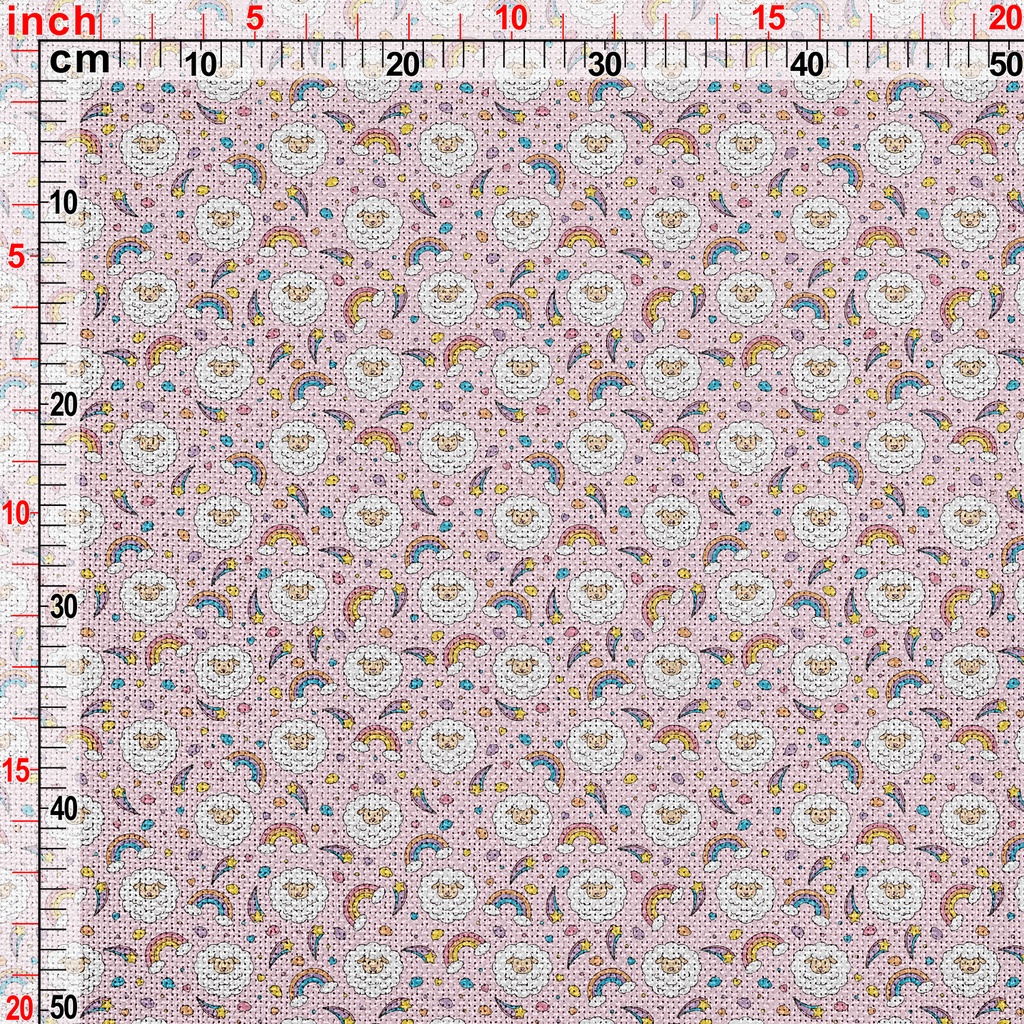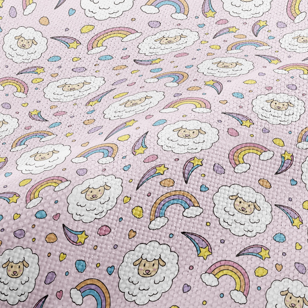 彩色可愛的綿羊麻布(幅寬150公分)