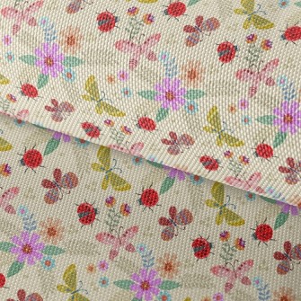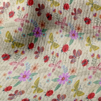 五顏六色花和蝴蝶鳥眼布(幅寬160公分)