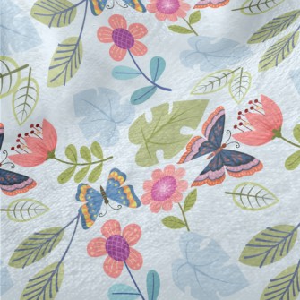 紛飛蝴蝶和花麻布(幅寬150公分)