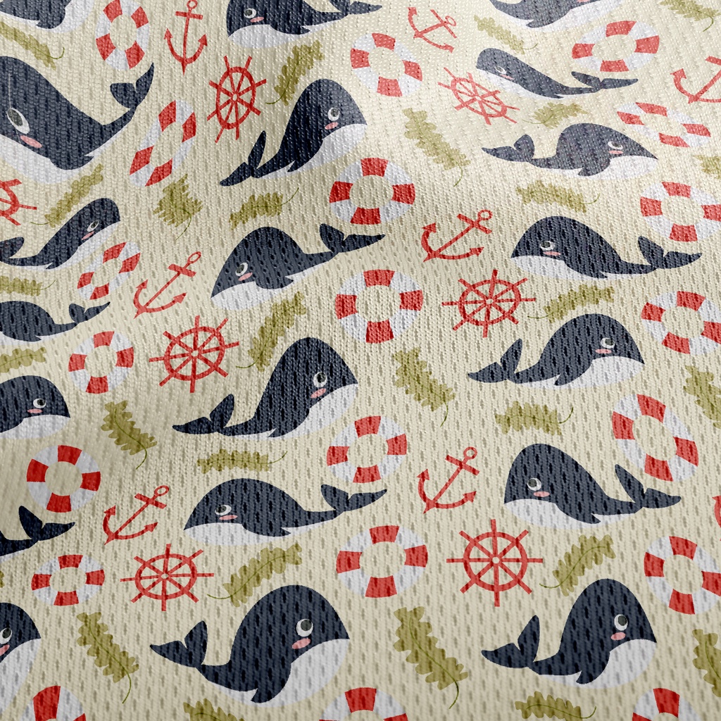鯨魚和船舵鳥眼布(幅寬160公分)