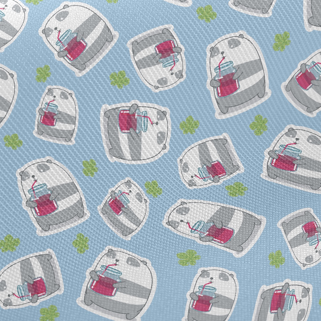 喝飲料熊貓斜紋布(幅寬150公分)
