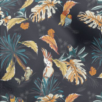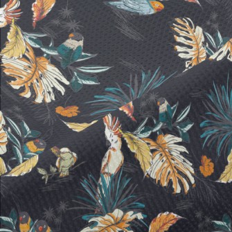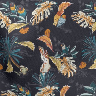 熱帶植物與鸚鵡斜紋布(幅寬150公分)