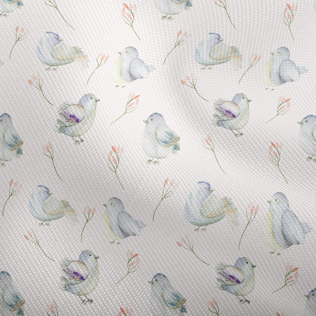 藍色小鳥和花雙斜布(幅寬150公分)