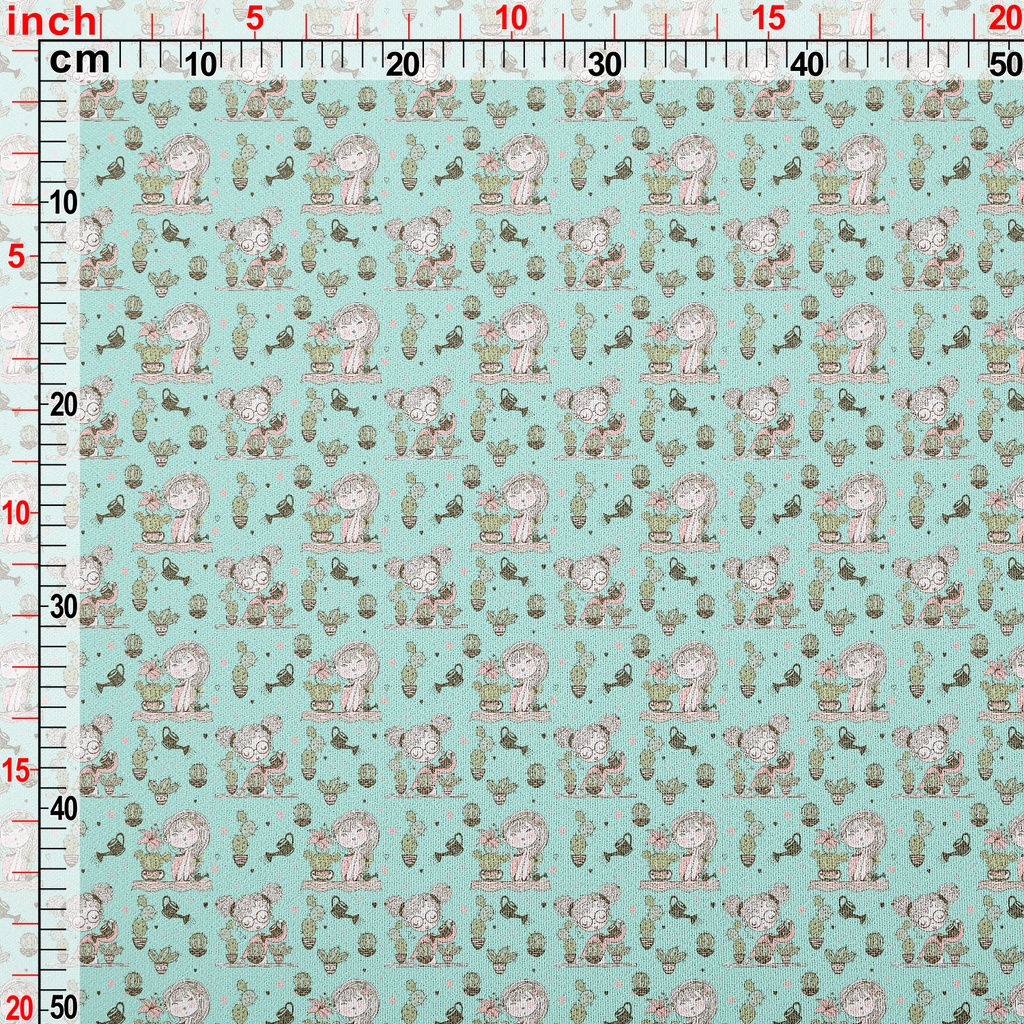 女孩種植仙人掌雪紡布(幅寬150公分)