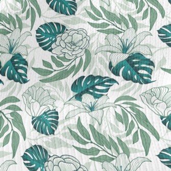 熱帶花朵與葉子牛津布(幅寬150公分)