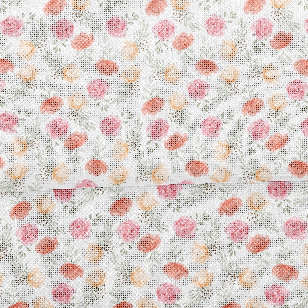 水彩玫瑰與牡丹麻布(幅寬150公分)