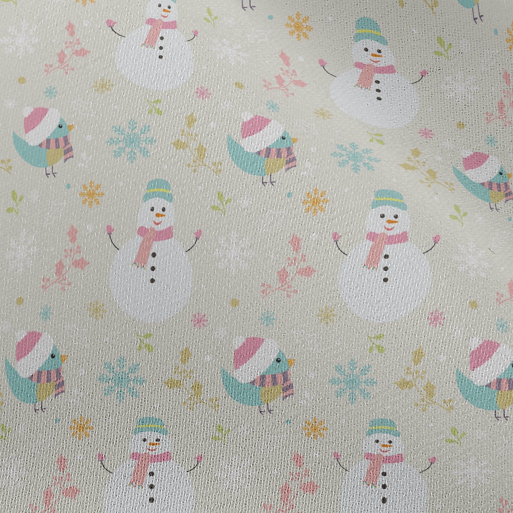 聖誕小鳥與雪人雪紡布(幅寬150公分)