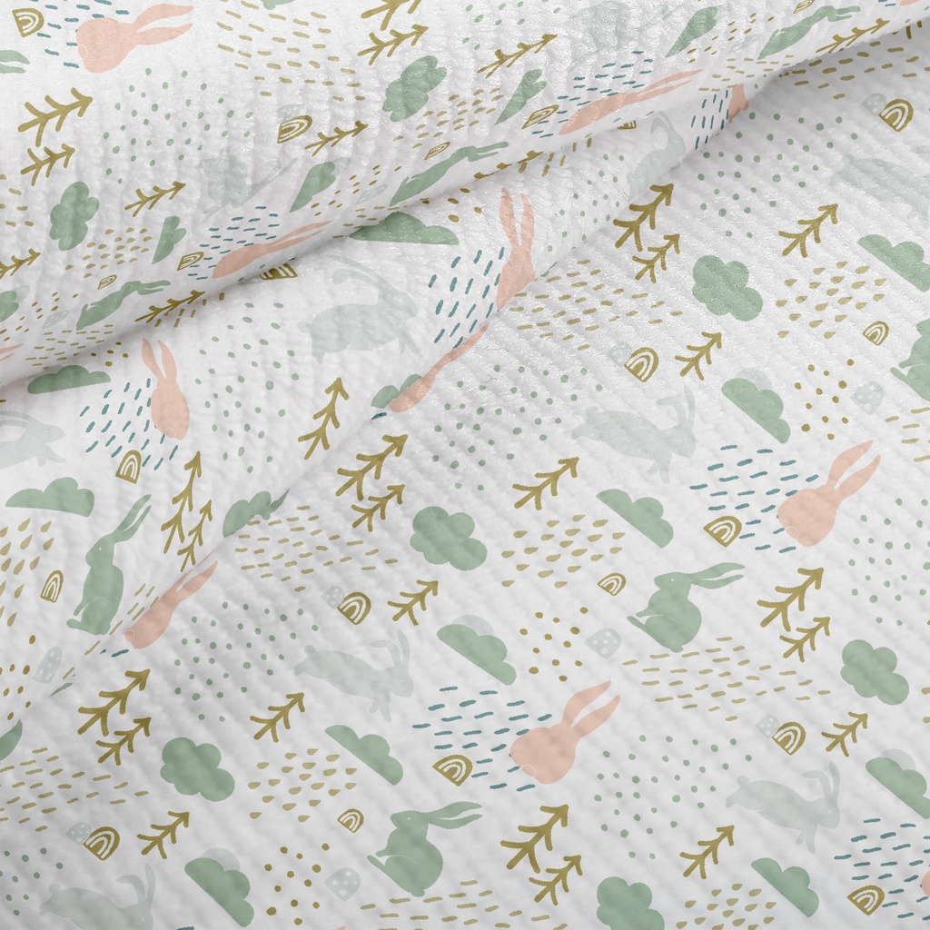 玩耍兔子剪影毛巾布(幅寬160公分)