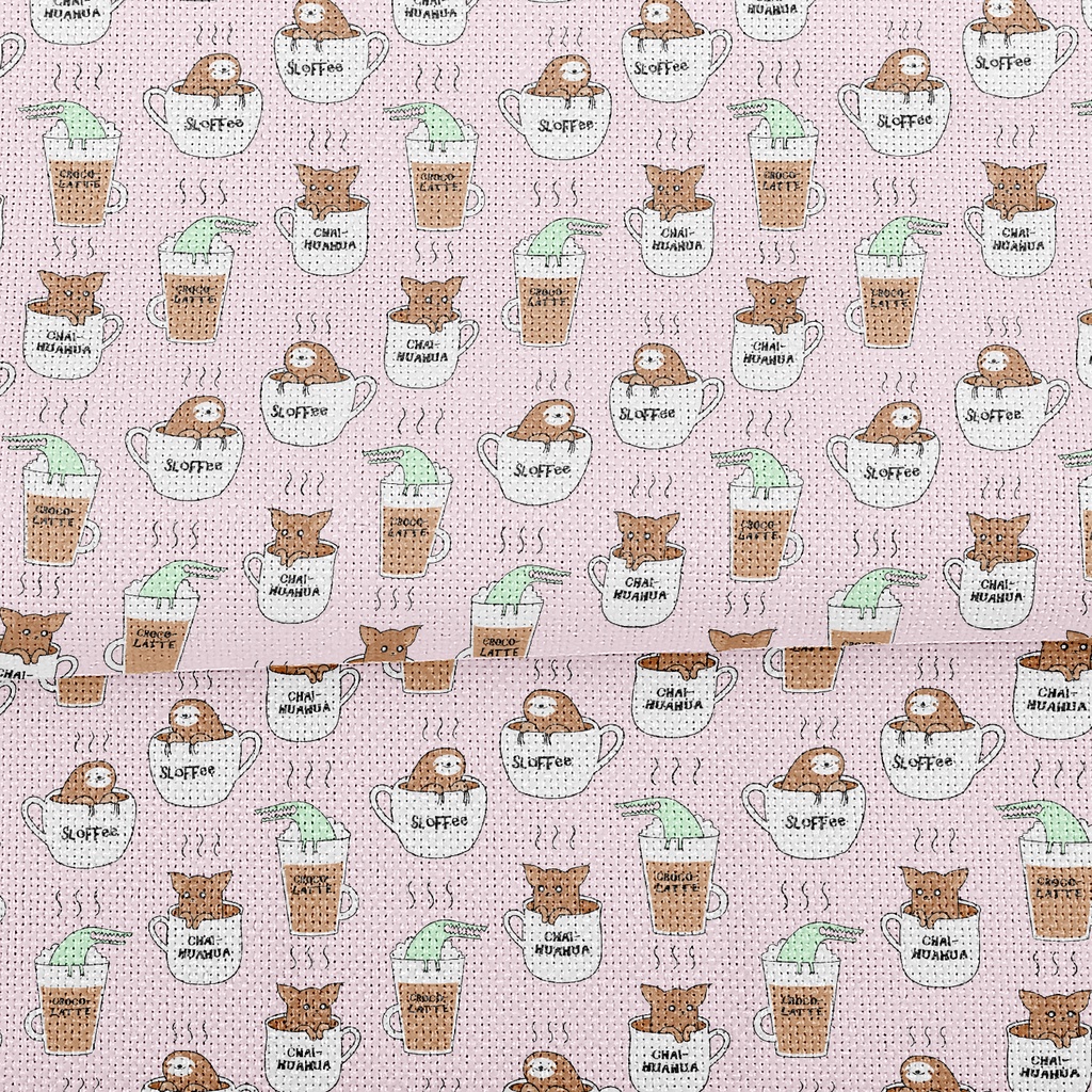可愛動物泡咖啡麻布(幅寬150公分)