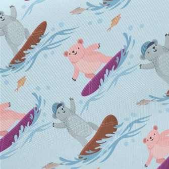 捕魚衝浪熊雪紡布(幅寬150公分)