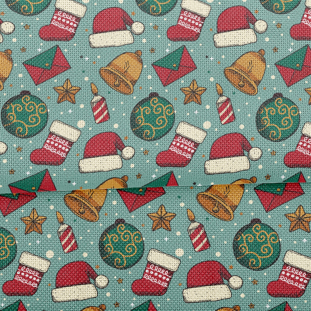 聖誕帽襪子彩球麻布(幅寬150公分)