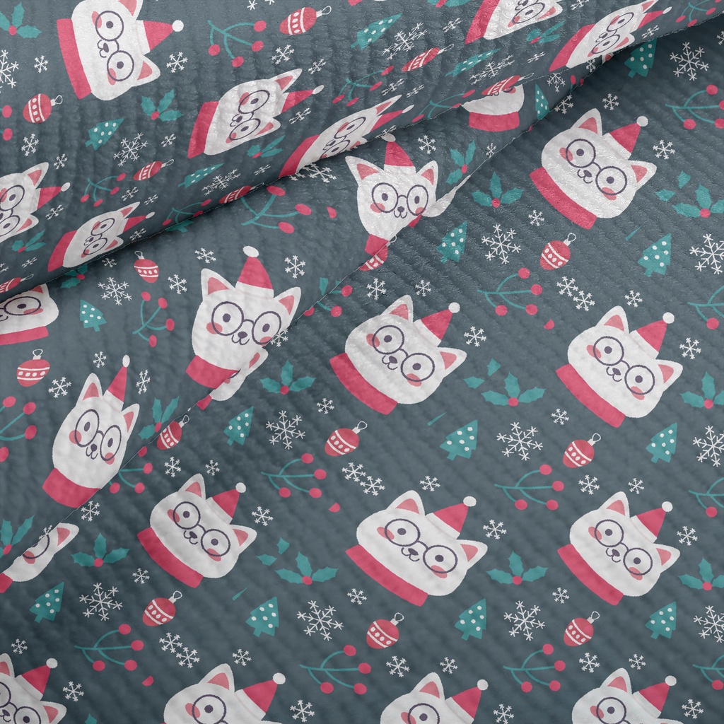 戴眼鏡聖誕貓毛巾布(幅寬160公分)