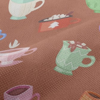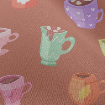 可愛造型杯子可可雪紡布(幅寬150公分)