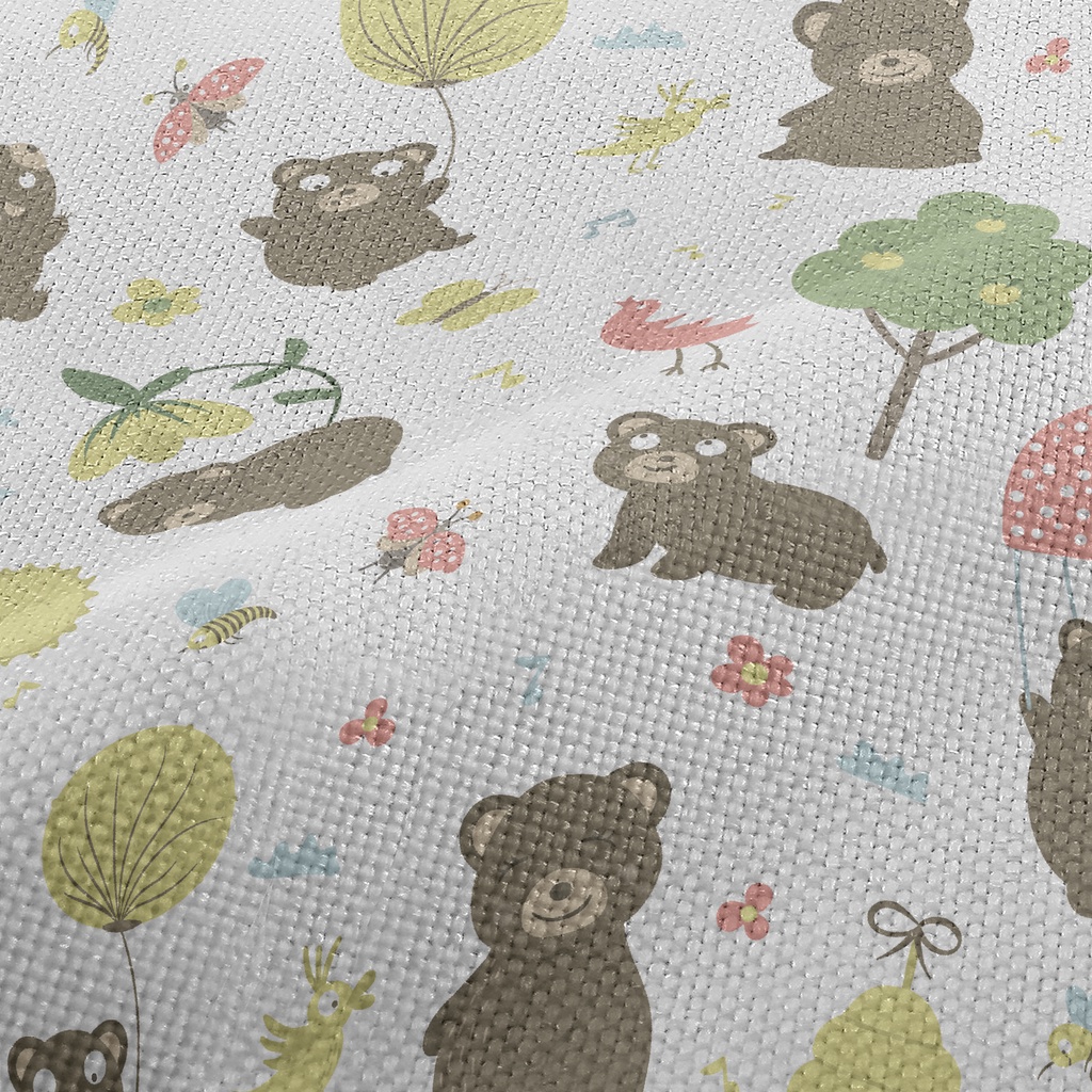 森林玩耍大熊麻布(幅寬150公分)