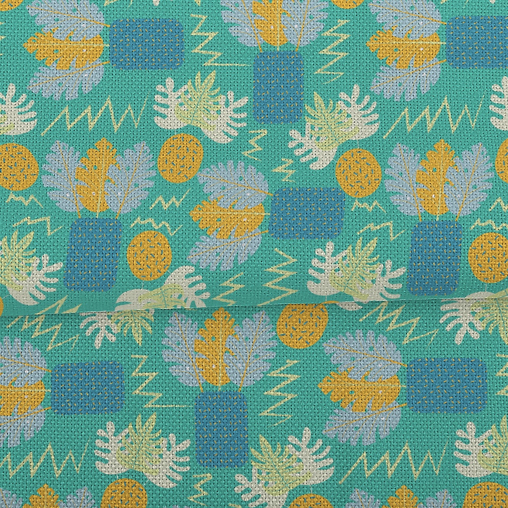 幾何熱帶大片葉子麻布(幅寬150公分)