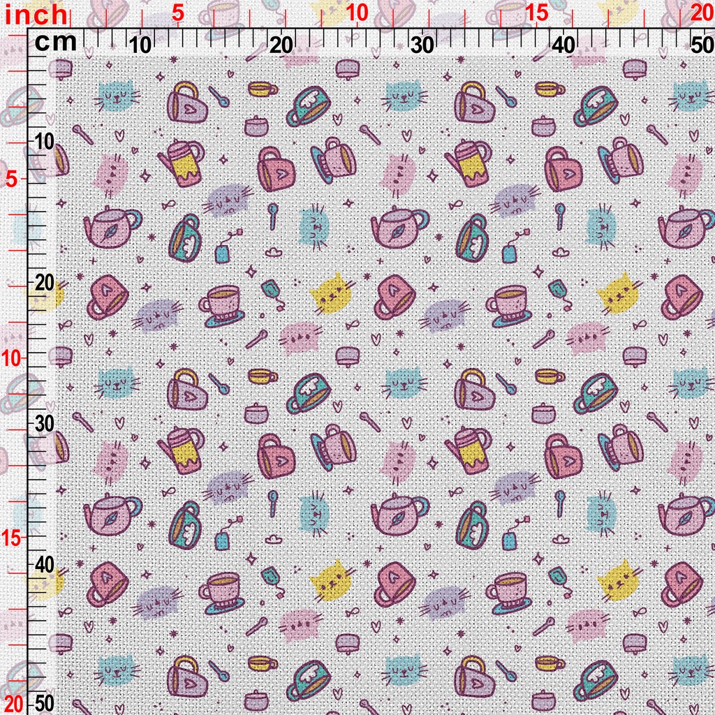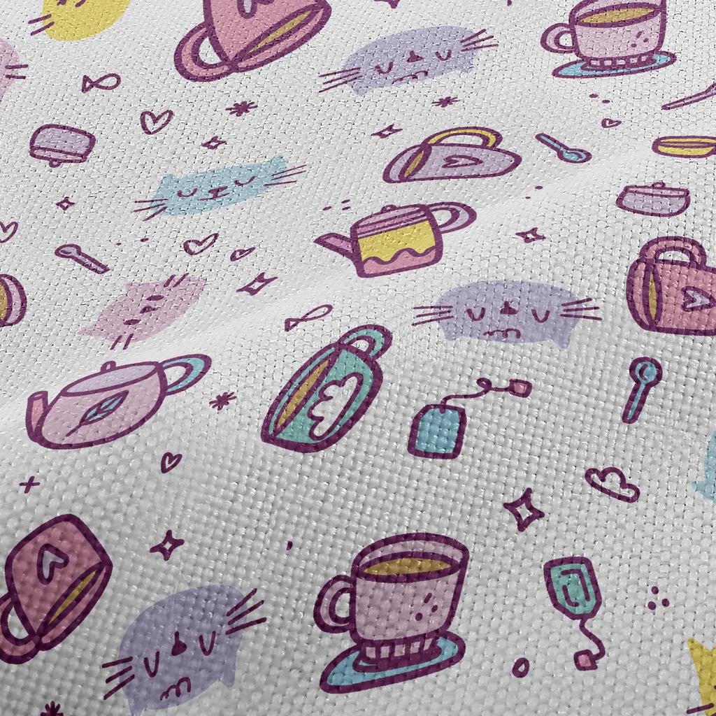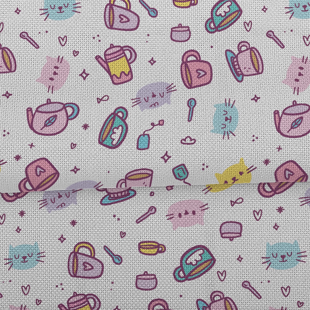 小貓家族下午茶麻布(幅寬150公分)