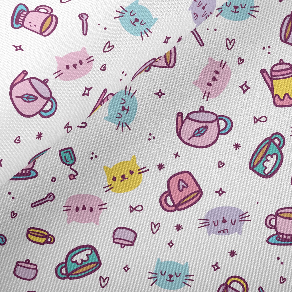 小貓家族下午茶斜紋布(幅寬150公分)