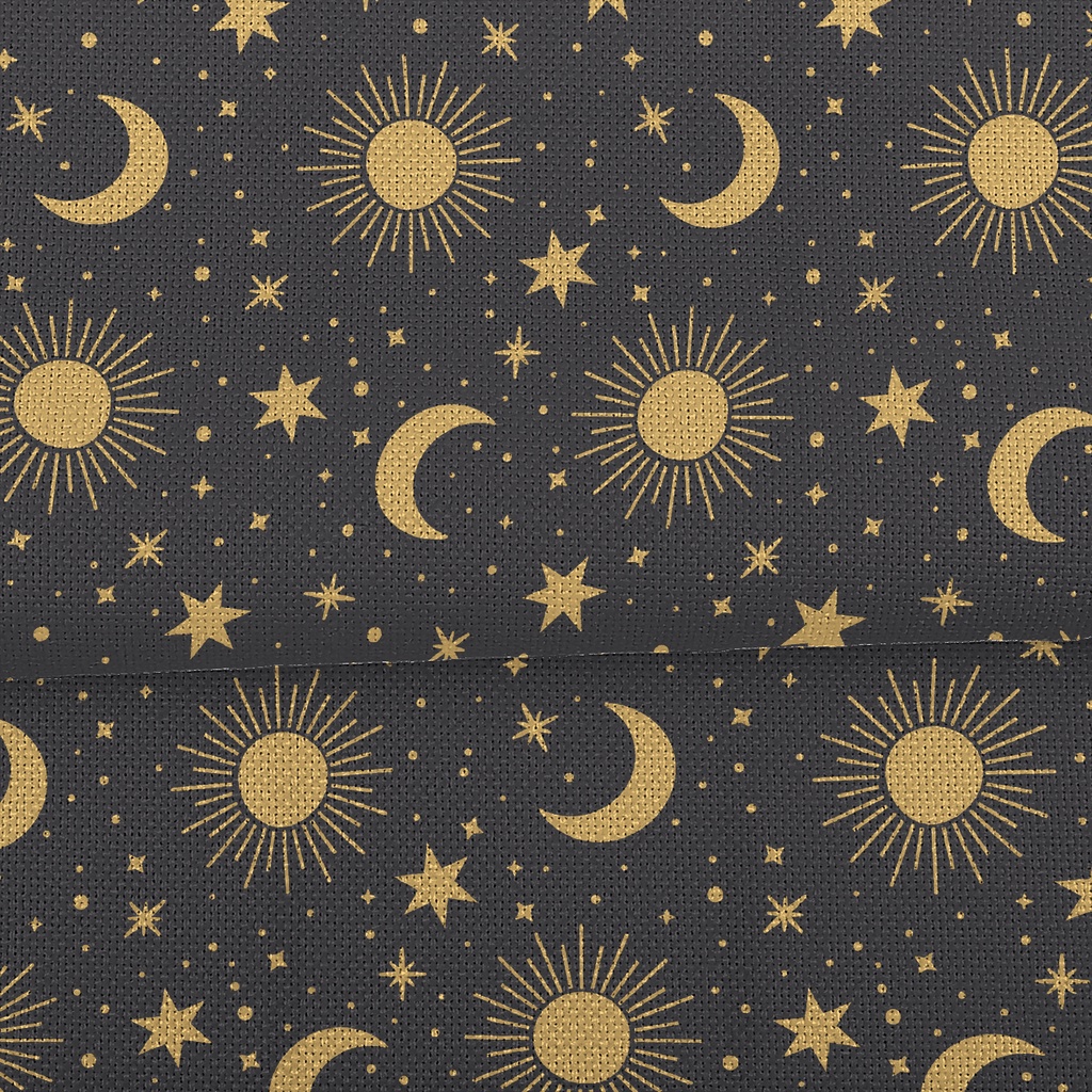 耀眼星星太陽月亮麻布(幅寬150公分)