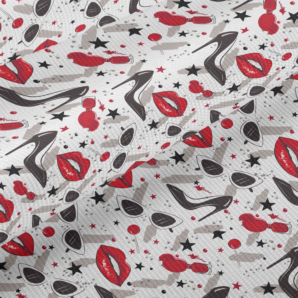 紅脣高跟鞋墨鏡雙斜布(幅寬150公分)