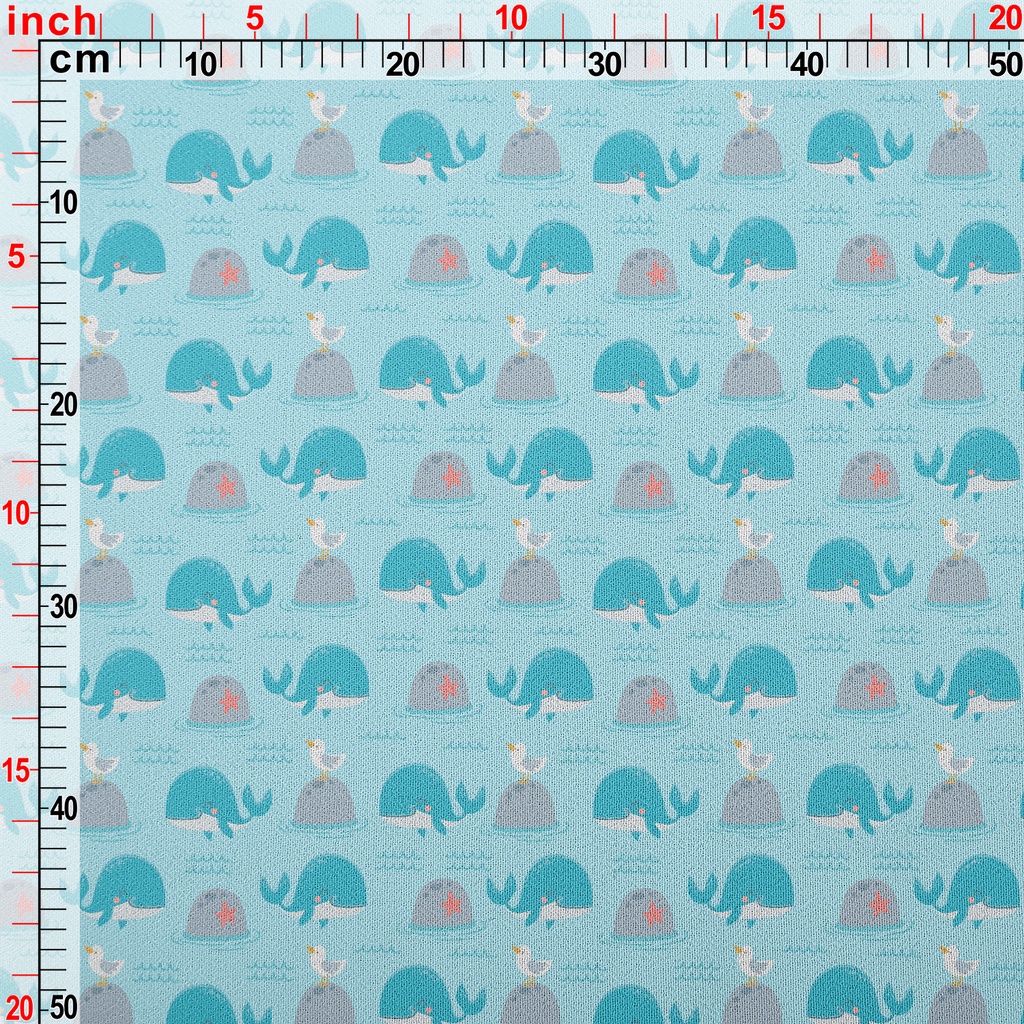 活潑鯨魚與海鷗雪紡布(幅寬150公分)
