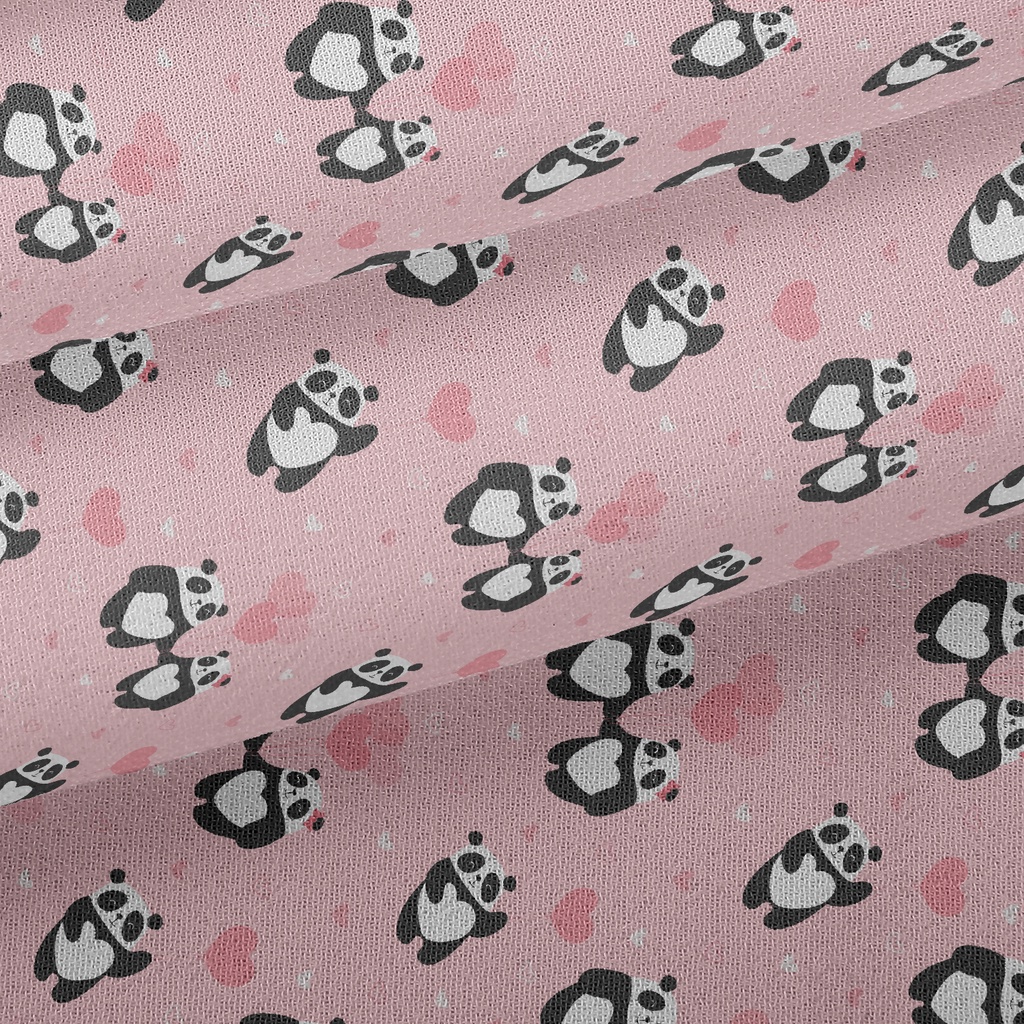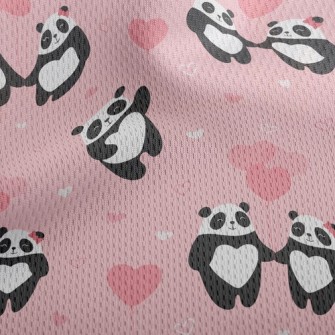 愛心氣球貓熊情侶雪紡布(幅寬150公分)