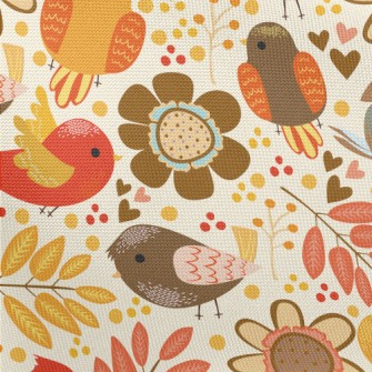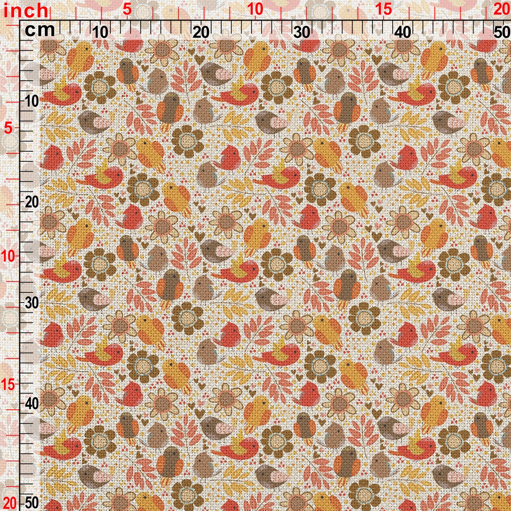 秋天豐收小鳥麻布(幅寬150公分)