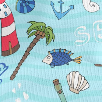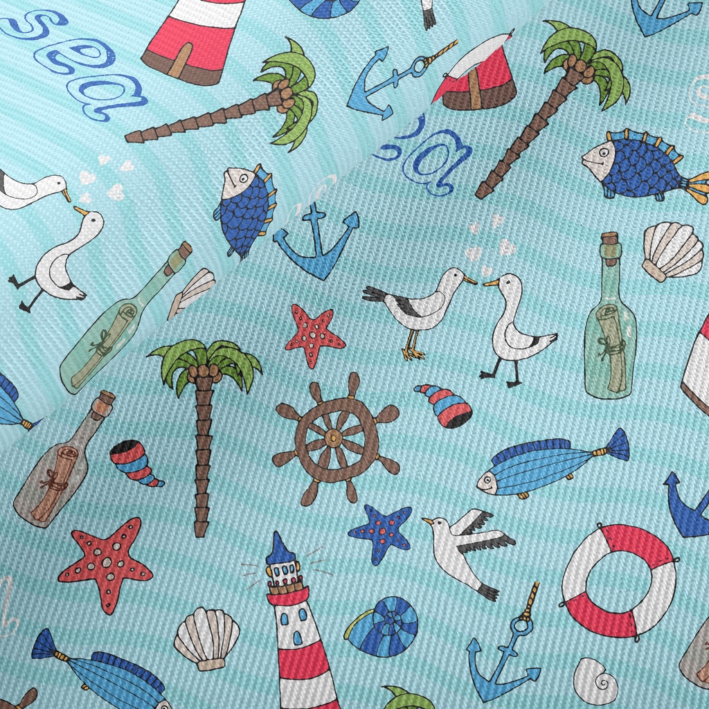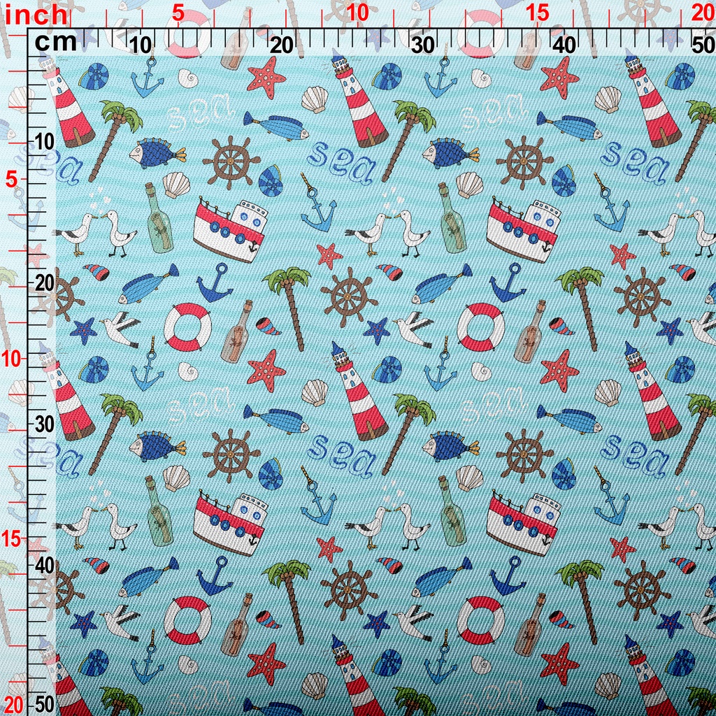 帆船燈塔海鷗魚斜紋布(幅寬150公分)