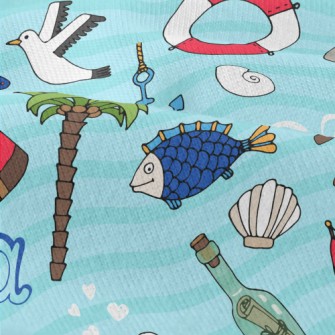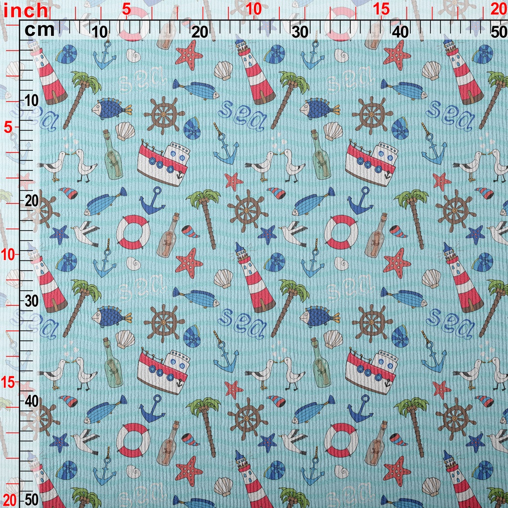 帆船燈塔海鷗魚燈芯絨(幅寬150公分)