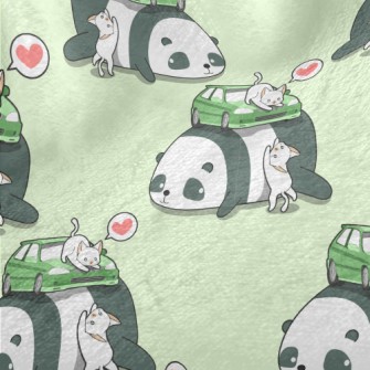 玩耍貓咪與貓熊車鳥眼布(幅寬160公分)