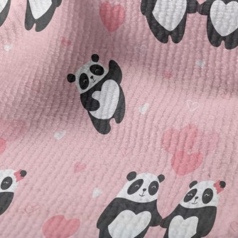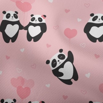 愛心氣球貓熊情侶麻布(幅寬150公分)