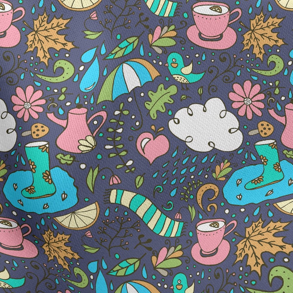 童趣雨鞋雨傘羅馬布(幅寬160公分)