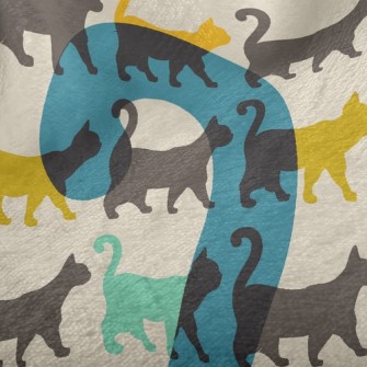 貓咪拼圖馬賽克竹節麻(幅寬150公分)