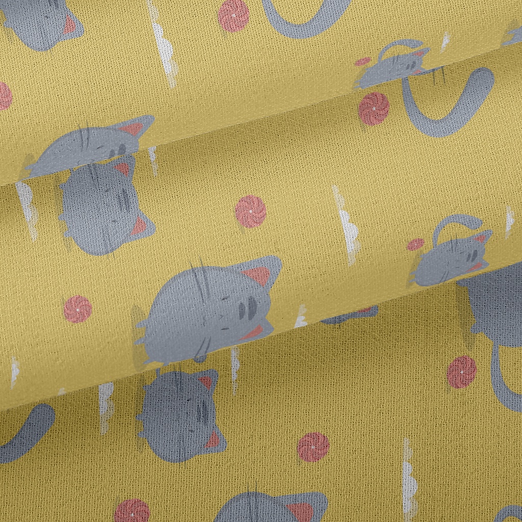 圓滾貓與毛線球雪紡布(幅寬150公分)