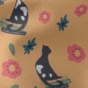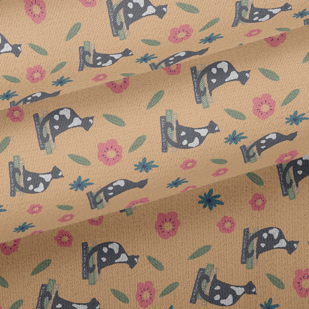 優雅貓與花朵雪紡布(幅寬150公分)