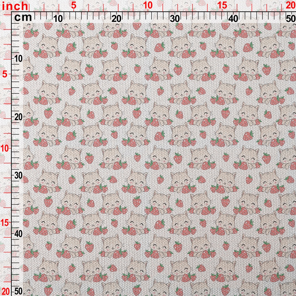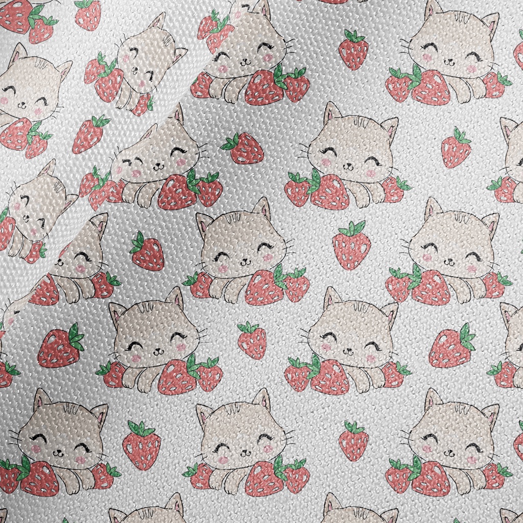 微笑貓咪與草莓帆布(幅寬150公分)