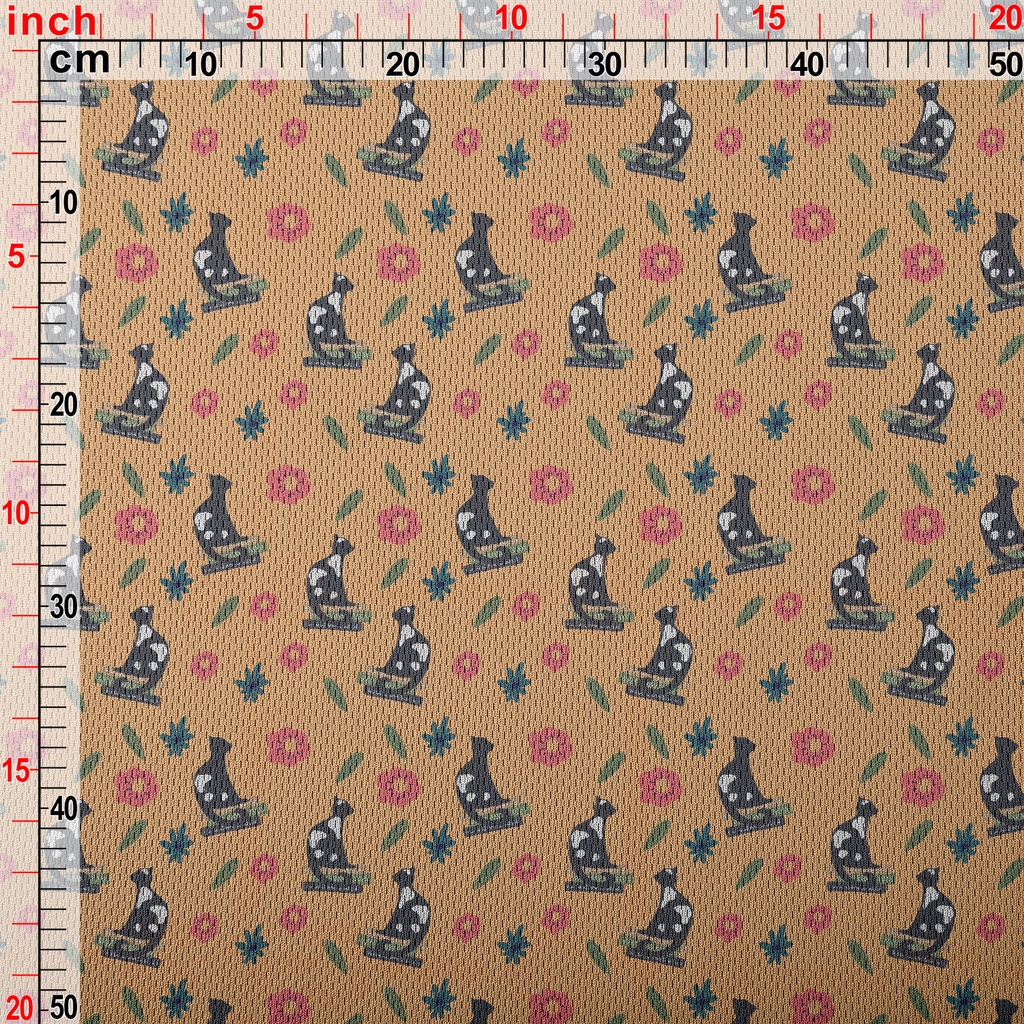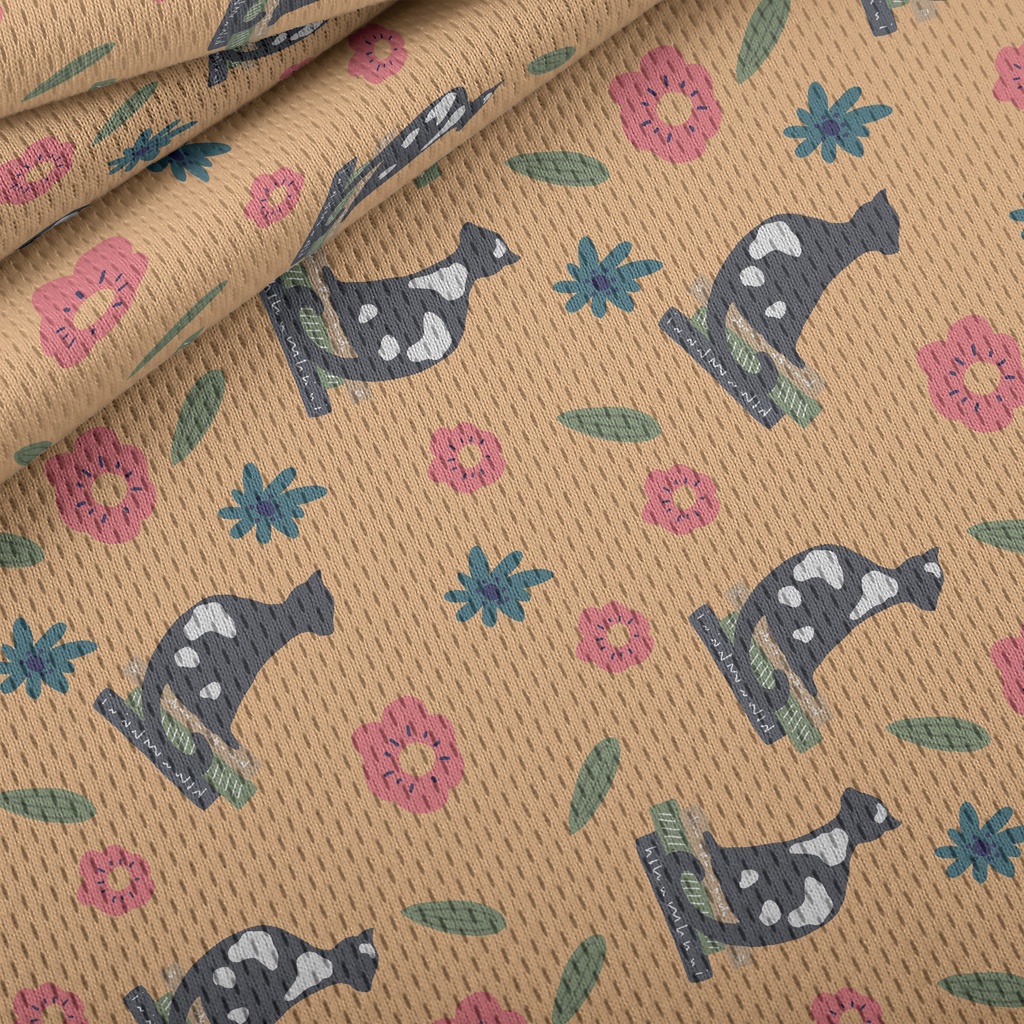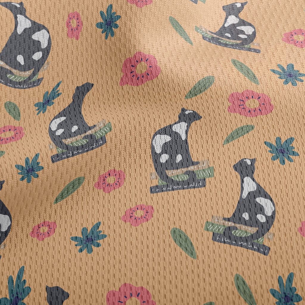 優雅貓與花朵鳥眼布(幅寬160公分)
