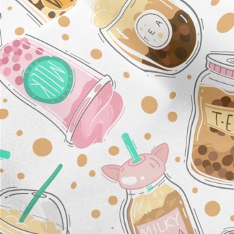 珍珠奶茶造型杯毛巾布(幅寬160公分)
