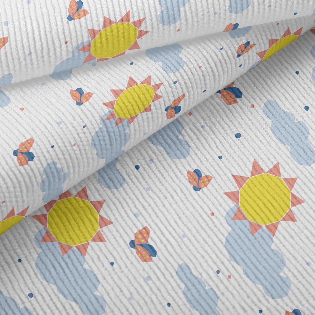 幾何太陽雲朵燈芯絨(幅寬150公分)
