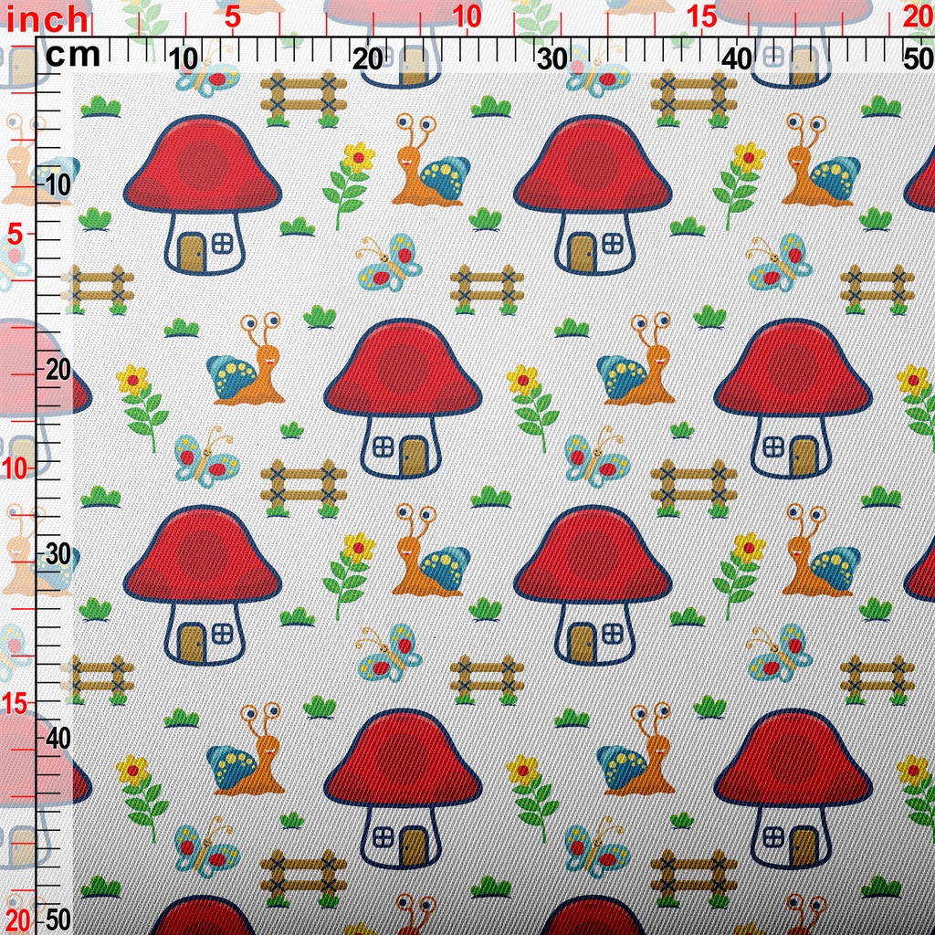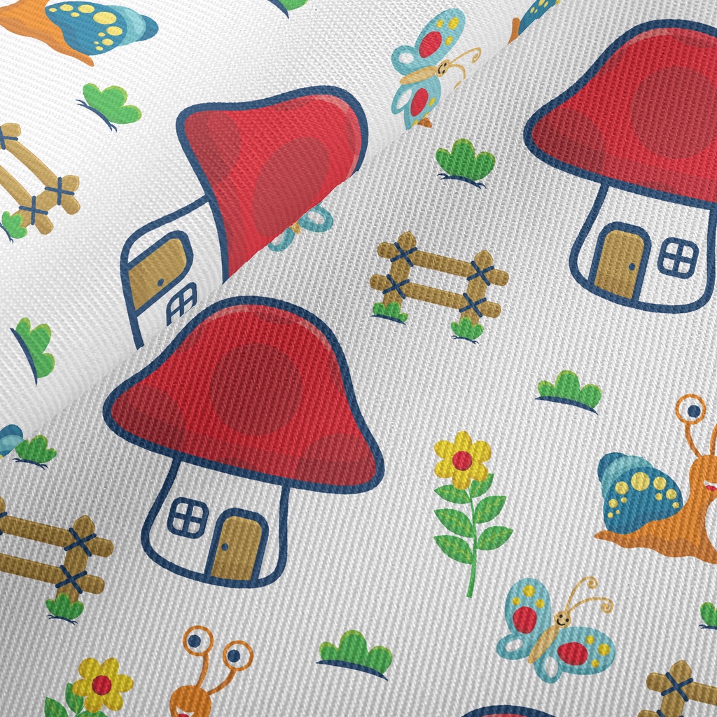 蝸牛與蝴蝶大蘑菇斜紋布(幅寬150公分)